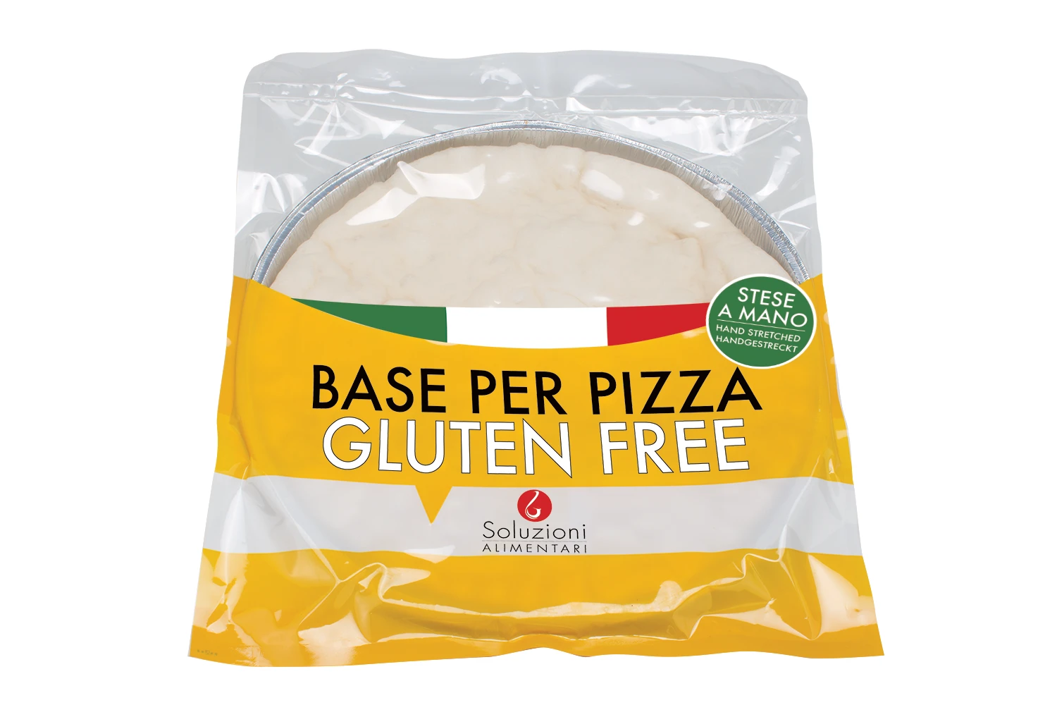 base per pizza senza glutine e senza lattosio, come tutti gli altri prodotti gluten-free di Soluzioni Alimentari, è stata autorizzata dal Ministero della Sanità come prodotto sicuro e adatto alle persone celiache. L'impasto è di ottima qualità e ogni nostra base per pizza precotta è confezionata singolarmente in teglia d'alluminio e pronta all'uso.